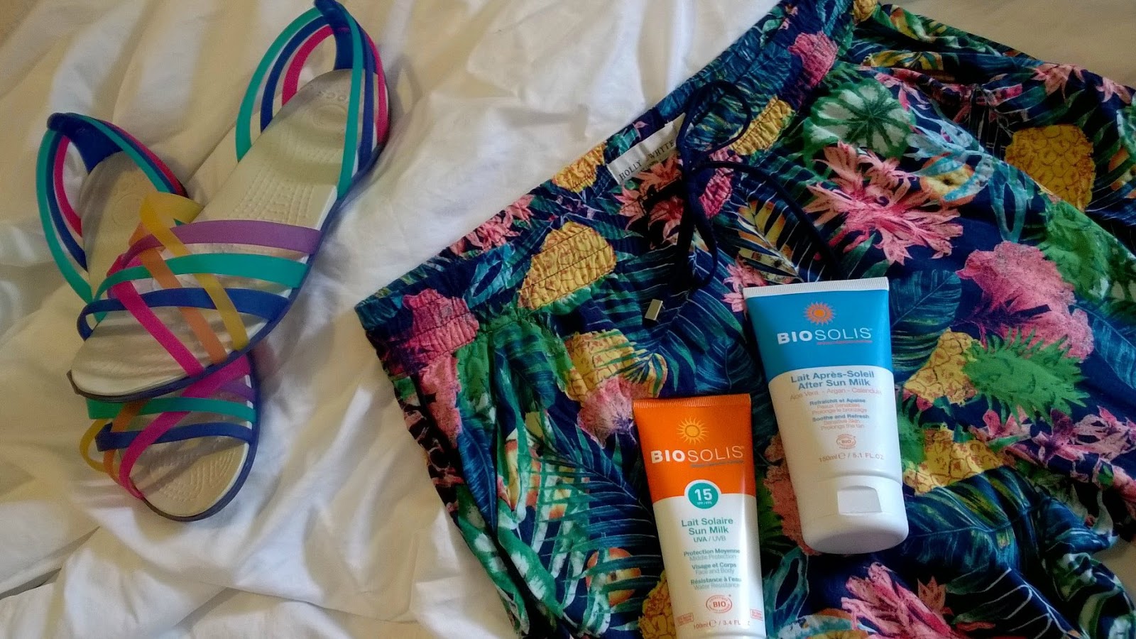 Aloin illalla vähitellen keräilemään kamoja kassiin ja aloitin kosmetiikkaosastolta. Biosoliksen maahantuojalta saadut nanopartikkelittomat aurinkovoiteet ja aloe vera -pohjainen after sun lähtevät mukaan. Lapset voivat ottaa mummolaan mukaan spf 50 suojan, jos sattuisi kesä ensi viikon aikana tulemaan tänne Pohjolaan. Koodilla "armoo" saat -20% Natural Goods Companyn tuotteista.